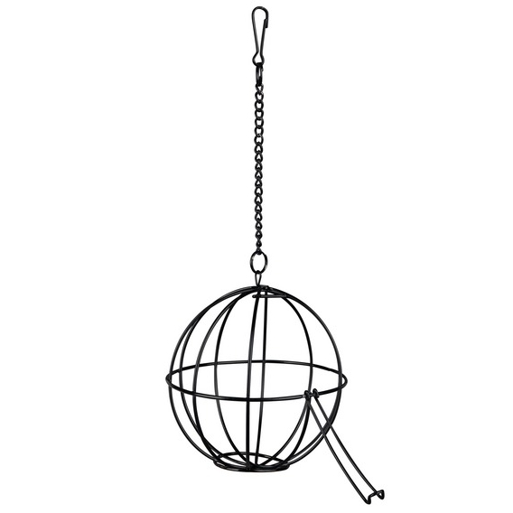 Представлена известным немецким производителем зоотоваров Трикси кормушка - держатель сена для грызунов 12 см, применяется в качестве привлекательного развлечения, а также для кормления грызунов, которые живут в домашних условиях. Использование аксессуара мотивирует домашнего любимца приложить усилие для получения еды, обеспечивает им активную деятельность, подвижность, кормушка оснащена специальным защитным кольцом, которое предотвращает застреванию животных. Изготовленная кормушка - шар из высококачественного крепкого металла, который не содержит в составе токсичных и вредных веществ, и является абсолютно безопасным для здоровья любимцев. На поверхность нанесено специальное порошковое покрытие, предназначается для таких кормов как сено, капуста, солома, других.