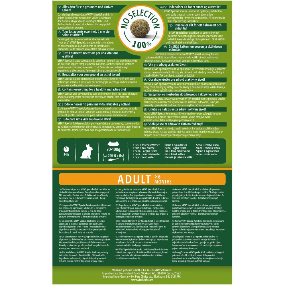 Корм для кроликів VITA® Special Adult – ідеально адаптований до потреб дорослих декоративних кроликів. Має низький вміст кальцію та цінні жирні кислоти омега-3 та омега-6. Для здорової шкіри та красивої вовни!