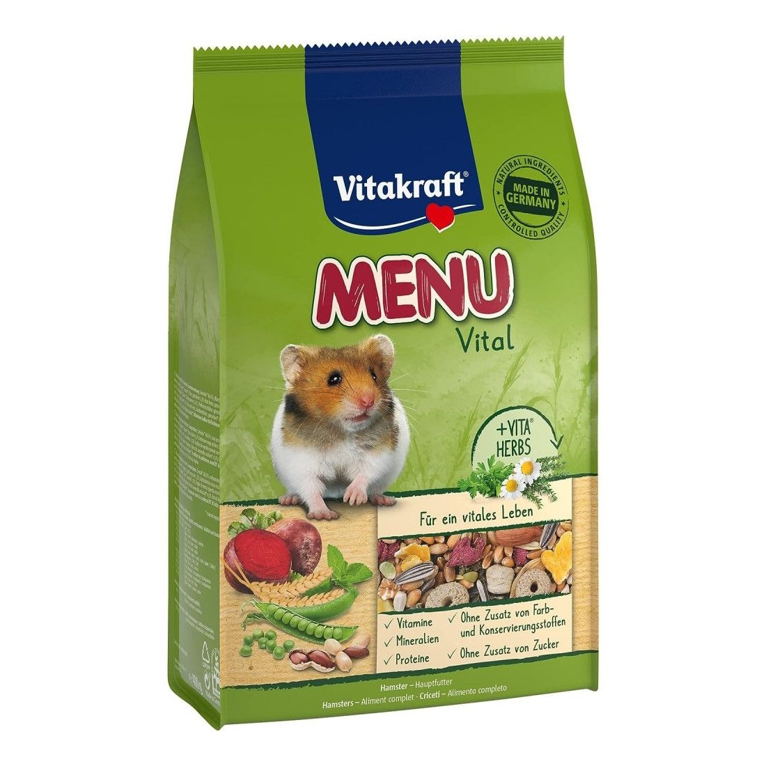 Меню Vital для хом'яків є збалансованим раціоном, в складі якого ваш вихованець знайдете все необхідне для свого здорового і тривалого життя. Корм містить різні злаки і корисні овочі. Склад меню збагачений смачним насінням і горіхами, що містять цінні білки, вони сприяють додатковій життєвій енергії хом'яка. Всі необхідні вітаміни, мінерали та мікроелементи позитивно впливають на стан Вашого гризуна.