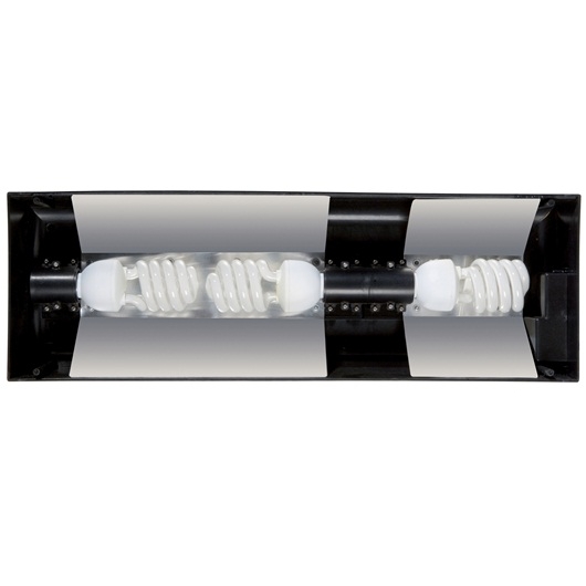 Комбинация двух разных компактных флуоресцентных ламп Exo Terra Compact Top для создания идеального соотношения ультрафиолетового и видимого света, а использование в качестве источника света лампы накаливания, такой как Exo Terra Sun Glo, позволит повысить общую температуру воздуха в террариуме. Дополнительные аксессуары Exo Terra, такие как цифровые термометр и гигрометр, а также термостат и гигростат, могут быть установлены в специальный желоб на верхней стороне светильника.