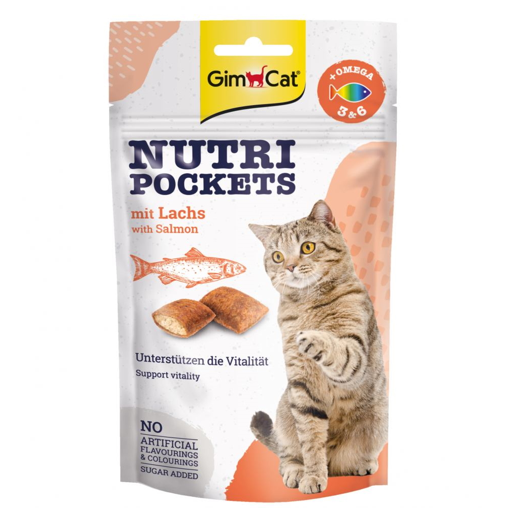 Каталог товаров : Ласощі для котів > Витаминное лакомство для кошек GimCat Nutri Pockets Лосось с Омега 3 и 6, 60г