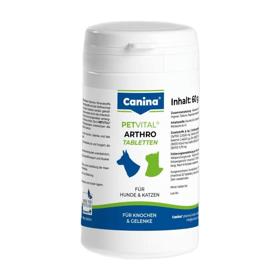 Каталог товаров : Вітамінні добавки та вітаміни для котів > Витамины для собак и кошек Canina Petvital Arthro-Tab с проблемными суставами 60таб