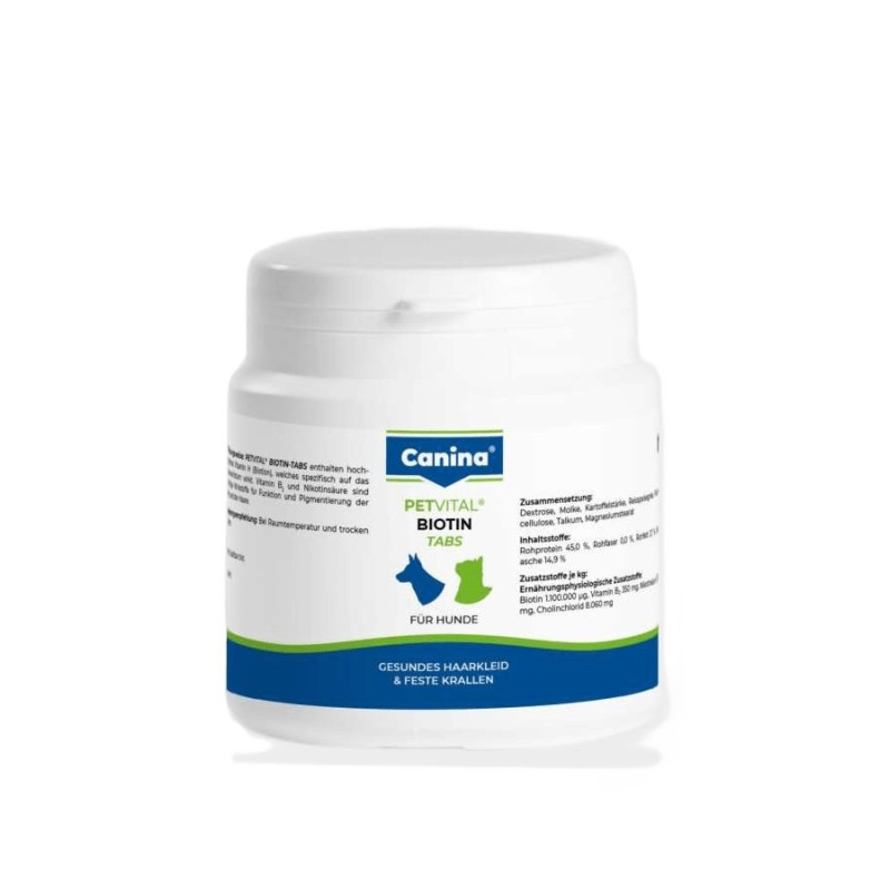PETVITAL® BIOTINTABS содержат очень высокую долю витамина H (биотин), который имеет специфическое влияние на рост шерсти и пигментов волос.