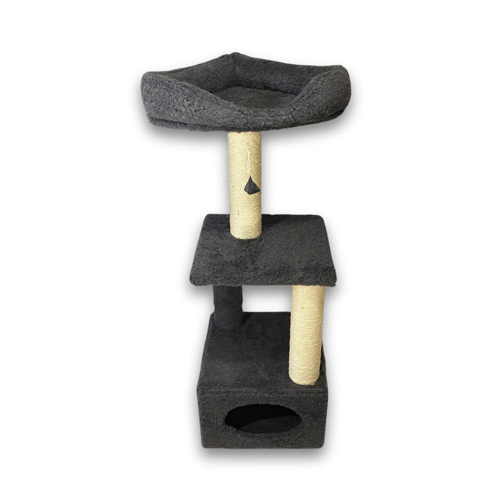 Дряпка з будиночком, майданчиками на стовпчиках та іграшкою дуже сподобається молодим енергійним котам і стане знахідкою для господарів, які хочуть врятувати меблі, двері, фіранки та інші предмети інтер'єру від гострих кігтиків вихованця. Розважальний комплекс з будиночком дозволить направити енергію котика в потрібне русло: по майданчиках можна стрибати, барабан стане місцем для відпочинку і гри з підвіскою, стовпчики-дряпки з обмоткою з сизалю дозволять задовольнити природні потреби в заточуванні кігтів.