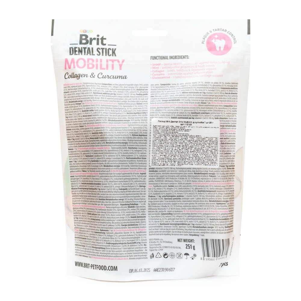 Brit Dental Stick спеціально створені для догляду за зубами песиків, ці функціональні ласощі ідеально підходять для щоденного споживання. Їхня структура розроблена для механічного очищення зубів, а гексаметафосфат натрію (SHMP) виконує функцію зубної пасти.