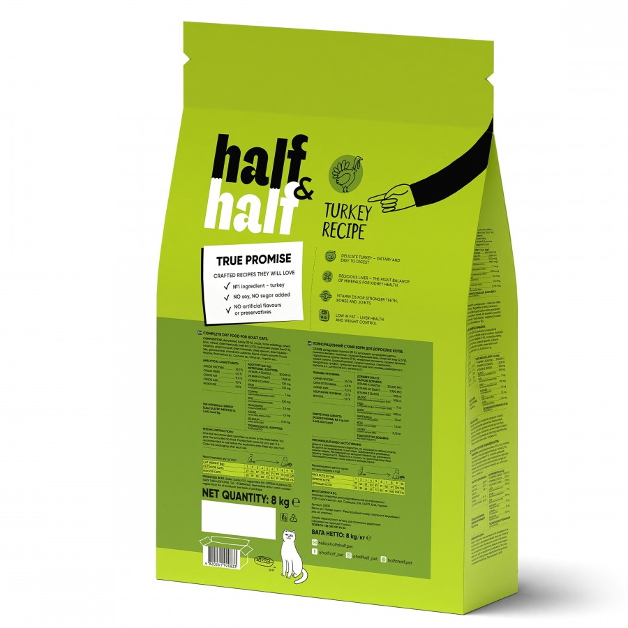 Збагачена фруктами, овочами, хондропротекторами й лікарськими рослинами рецептура Half&Half піклується про оптимальну користь та смак у кожній порції.
