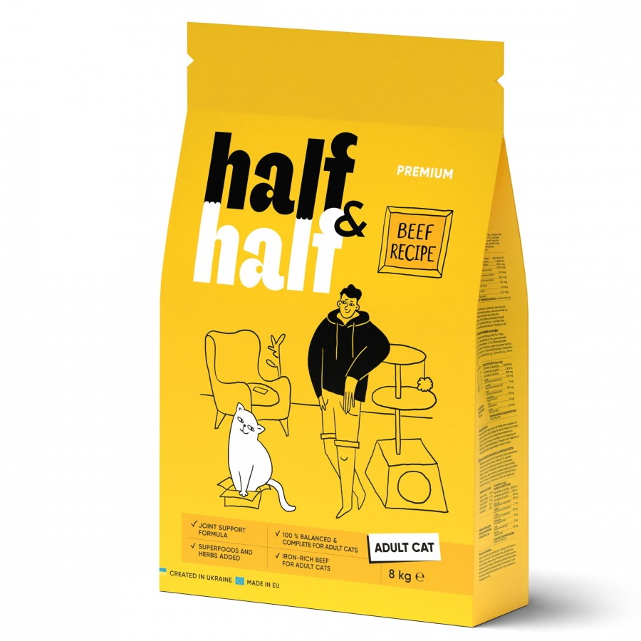 Сухий корм для дорослих котів Half Half з яловичиною 8кг