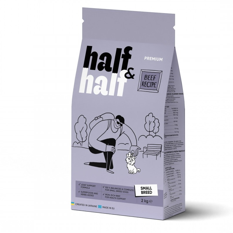 Збагачена фруктами, овочами, хондропротекторами й лікарськими рослинами рецептура Half&Half піклується про оптимальну користь та смак у кожній порції.