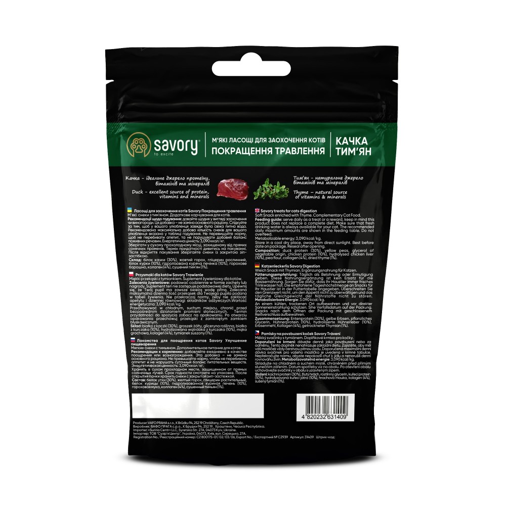 Додаткове харчування, що можна використовувати як заохочення та винагороду для улюбленця. Не тільки висока смакова привабливість, але й корисні складові, що є основою здорового харчування, роблять ласощі Savory ідеальним доповненням до раціону і частуванням для вихованця.