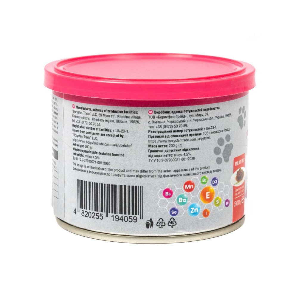 М'ясні шматочки Pet Chef містять таурин – незамінну амінокислоту, яку котячий організм самостійно не виробляє й отримує тільки у складі їжі.