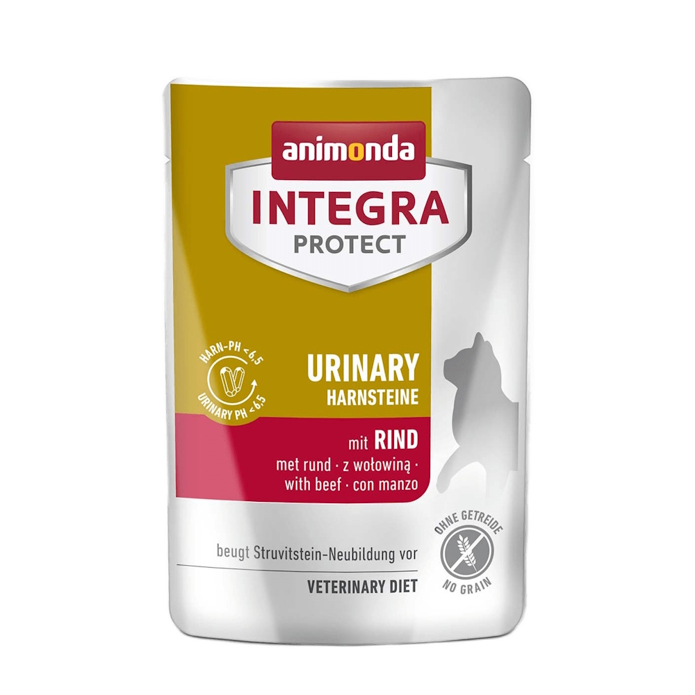 INTEGRA PROTECT Urinary Struvit з яловичиною – дієтичний вологий корм суперпреміум класу для профілактики повторного утворення струвітних каменів у котів. Рецептура корму була розроблена ветеринарами.