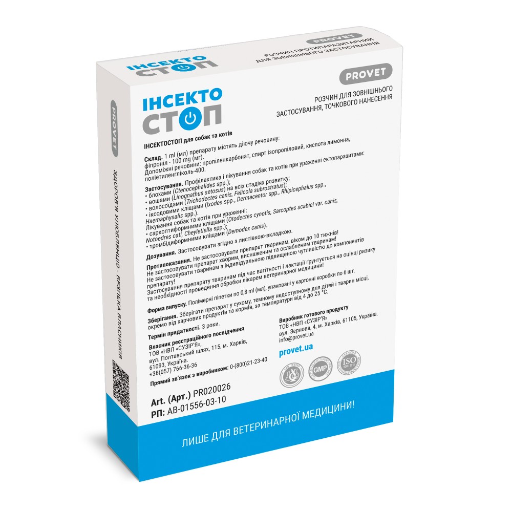 Форма випуску: полімерні піпетки об’ємом 0,8 мл, упаковані в картонні коробки по 6 штук. РП № АВ-01556-03-10.